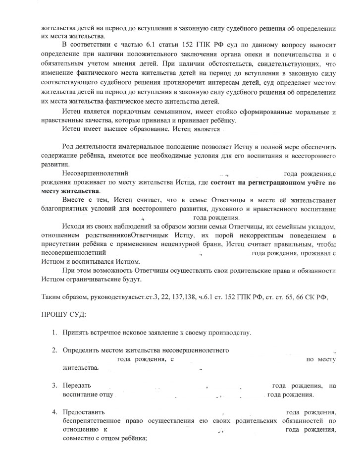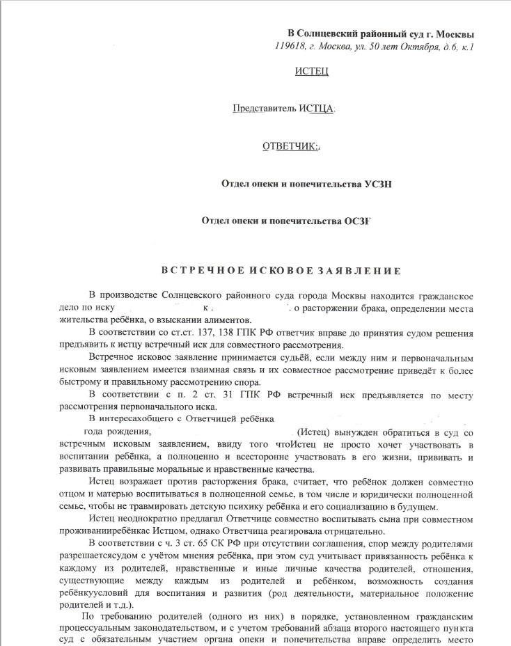 Встречное исковое заявление
