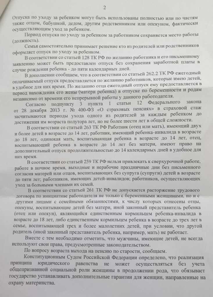 Нашли мы на наших пыльных полках интересный ответ Департамента демографической и семейной политики на тему равенства прав мужчин и женщин.